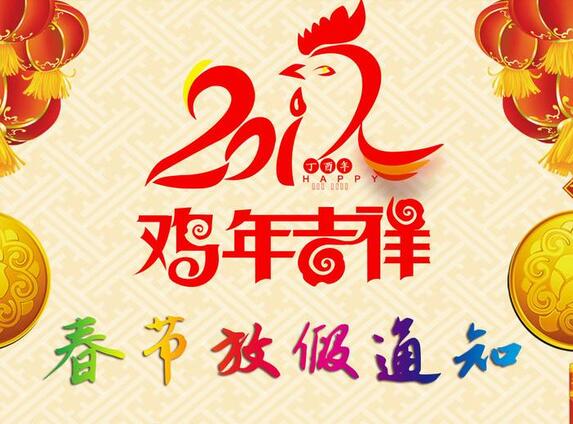 致全體東信公司全體家人們:放假時(shí)間:2017年1月26日-2017年2月4日,共10天,2月5日(正月初九)開始正常上班。